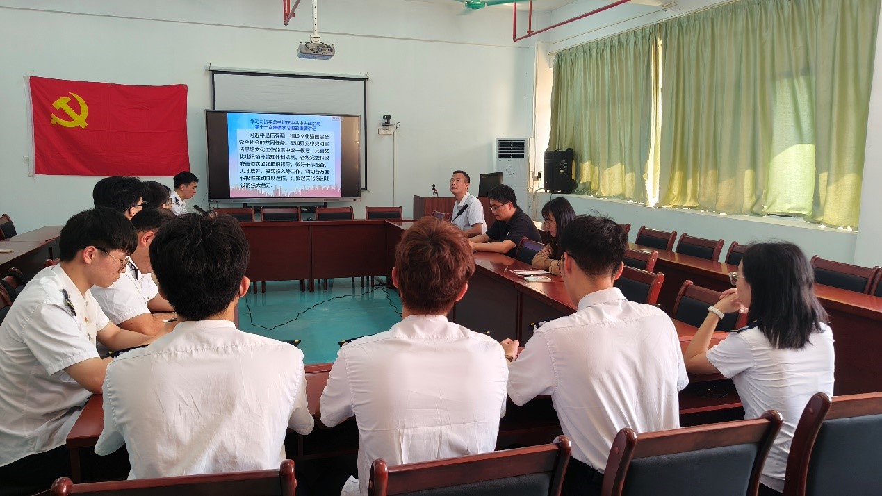 会上,谭文才老师带领所有党员一起学习了习近平总书记在中共中央政治局第十七次集体学习时的重要讲话精神。中共中央总书记习近平在主持学习时强调,要锚定2035年建成文化强国的战略目标,坚持马克思主义这一根本指导思想,植根博大精深的中华文明,顺应信息技术发展潮流,不断发展具有强大思想引领力、精神凝聚力、价值感召力、国际影响力的新时代中国特色社会主义文化,不断增强人民精神力量,筑牢强国建设、民族复兴的文化根基。谭文才指出:全体党员要深入学习习近平文化思想,深刻把握这一思想包含的深邃理论传承、厚重实践基础、鲜明时代特点,在建设文化强国的实践中自觉主动抓好贯彻落实;要不断坚定文化自信,自觉传承和弘扬中华优秀传统文化,为建设文化强国贡献力量。