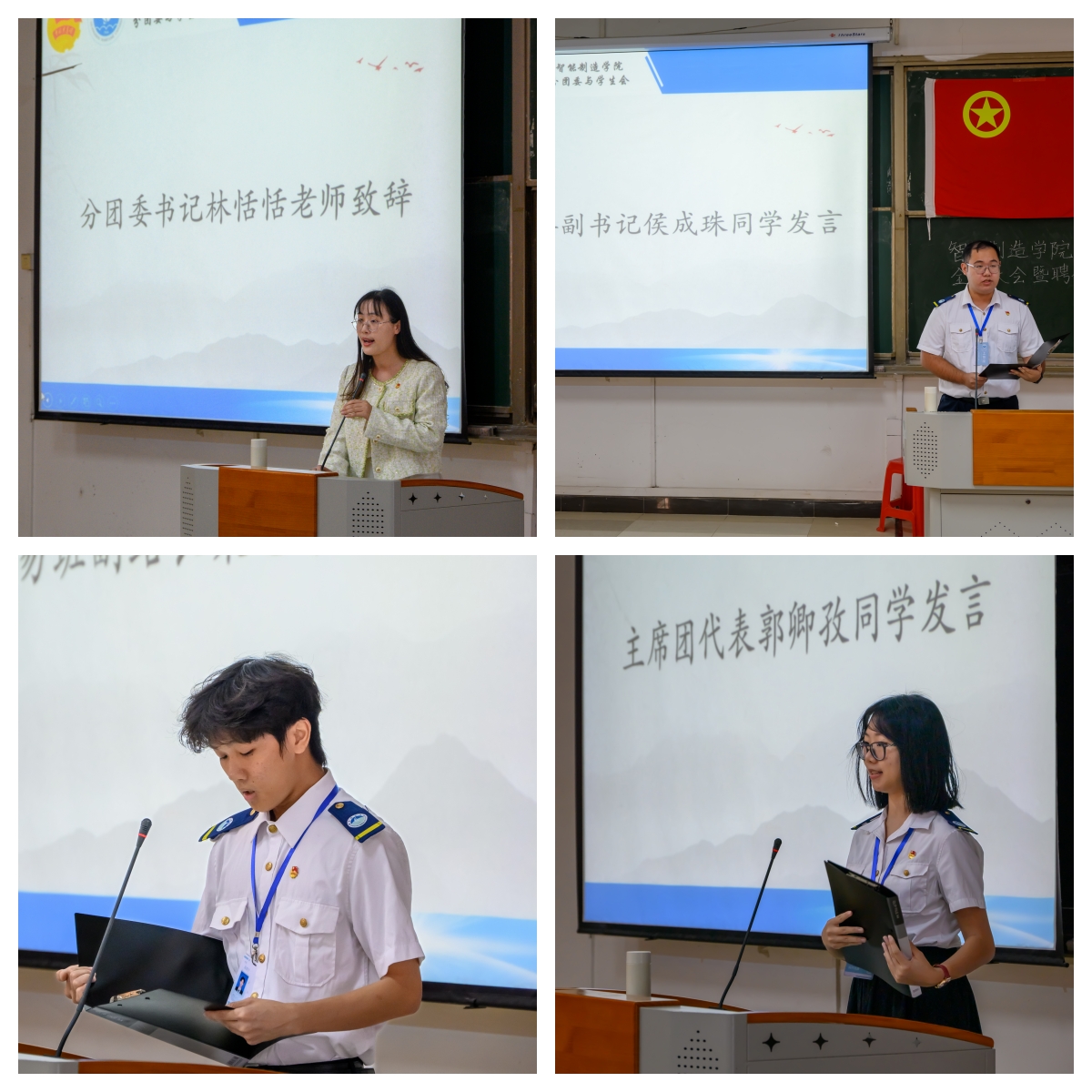 大会在激昂的团歌声中拉开了序幕。林恬恬老师在致辞中对学院新一届分团委、学生会的成立表示祝贺,对新加入的学生干部表示热烈欢迎,也对同学们过去的工作和奉献表示肯定和赞扬。她期望新一届的分团委、学生会学生干部可以坚持守正创新,发挥榜样作用,凝心聚力助力学院学生工作更上一层台阶。随后,分团委副书记侯成珠同学、主席团代表郭卿孜同学和易班副站长梁恩宁同学依次上台发言。