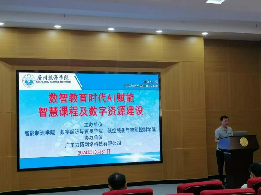 2024年10月31日下午,yl6809永利检测中心、数字经济与贸易学院、低空装备与智能控制学院联合邀请广东力拓网络科技有限公司设计事业部总监丘红兵工程师,在胜海厅举办题为“数智教育时代 AI 赋能智慧课程及数字资源建设”专题讲座。讲座聚焦通过人工智能技术促进教育教学的智能化,以及智慧课程设计与数字教育资源开发的最新趋势与实践案例,为智慧课程与数字资源建设提供解决方案。yl6809永利检测中心党委书记王新辉教授、副院长苏发教授及毕齐林副教授,数字经济与贸易学院院长唐宋元教授、副院长朱志辉教授及刘伟明副教授,低空装备与智能控制学院院长田雨波教授、副院长雷学生副教授,以及三个学院的任课教师参加了此次活动。本次讲座由苏发主持。