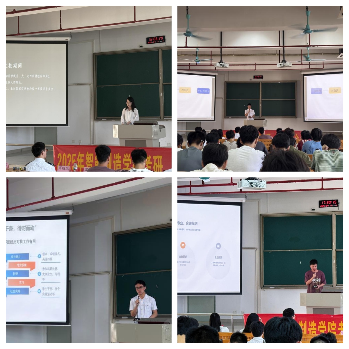 钟佳俊从科学备考、院校专业选择、学习计划制定和备考心态调适四个维度分享了考研经验。他结合自身经历,深入剖析了各阶段的学习重点与常见误区,为在座学子提供了一份翔实可行的“考研通关指南”。