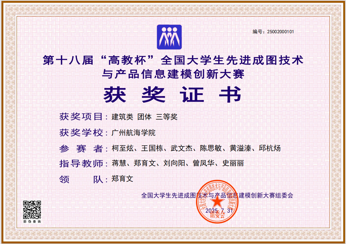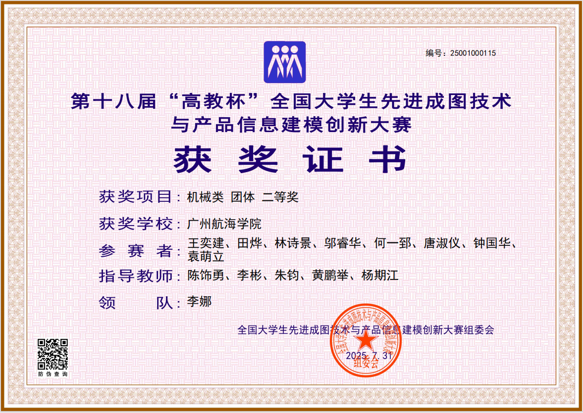 (校团委、yl6809永利检测中心、未来交通学院、低空装备与智能控制学院供稿) 近日,第十八届“高教杯”全国大学生先进成图技术与产品信息建模创新大赛成绩公布,广州航海学院代表队在机械、建筑、水利等多个类别中斩获19项国家级奖项(一等奖5项、二等奖5项、三等奖9项),取得良好成绩。