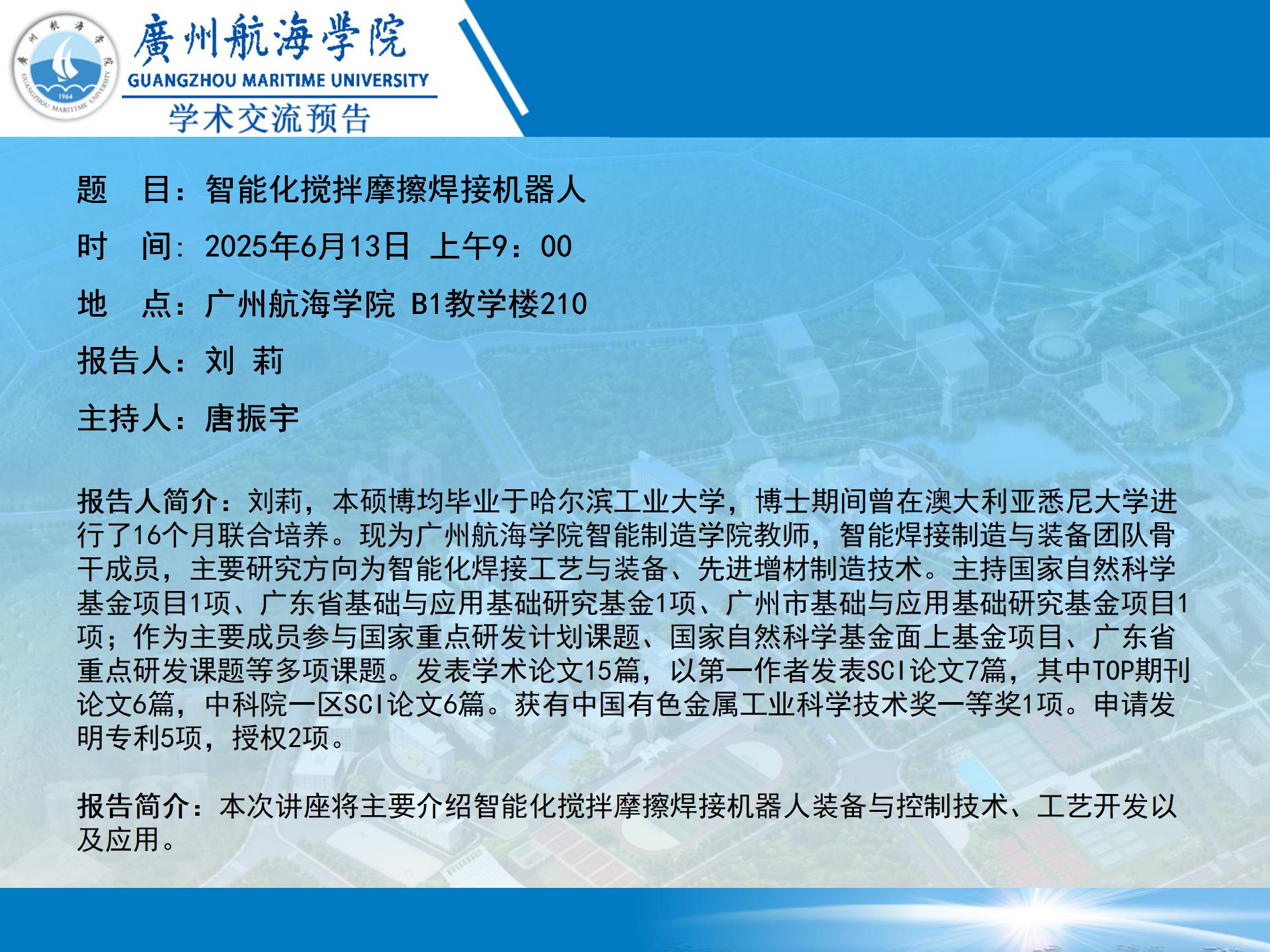 学术交流预告:智能化搅拌摩擦焊接机器人
