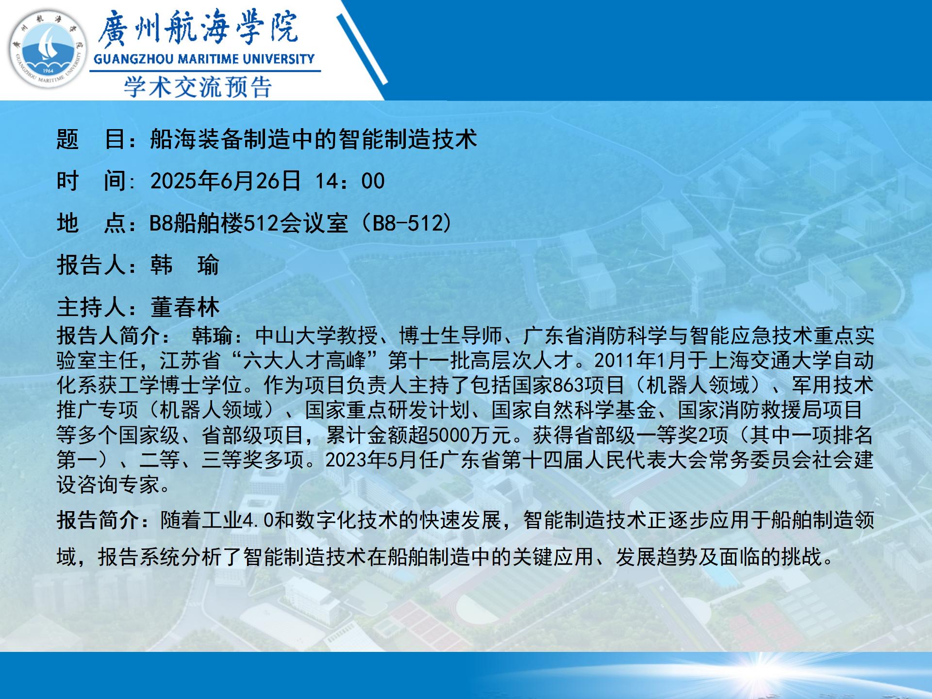 学术交流预告:船海装备制造中的智能制造技术