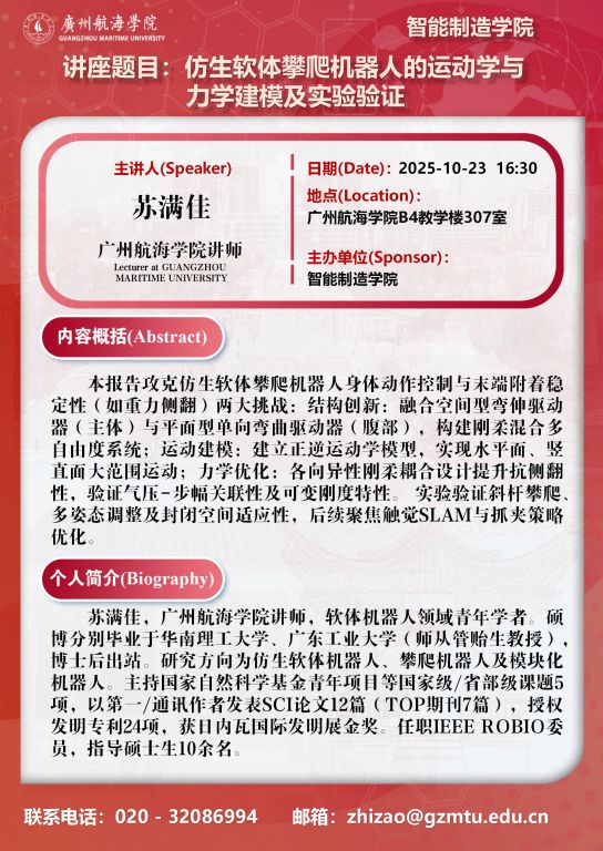 yl6809永利检测中心:苏满佳《仿生软体攀爬机器人的运动学与力学建模及实验验证》