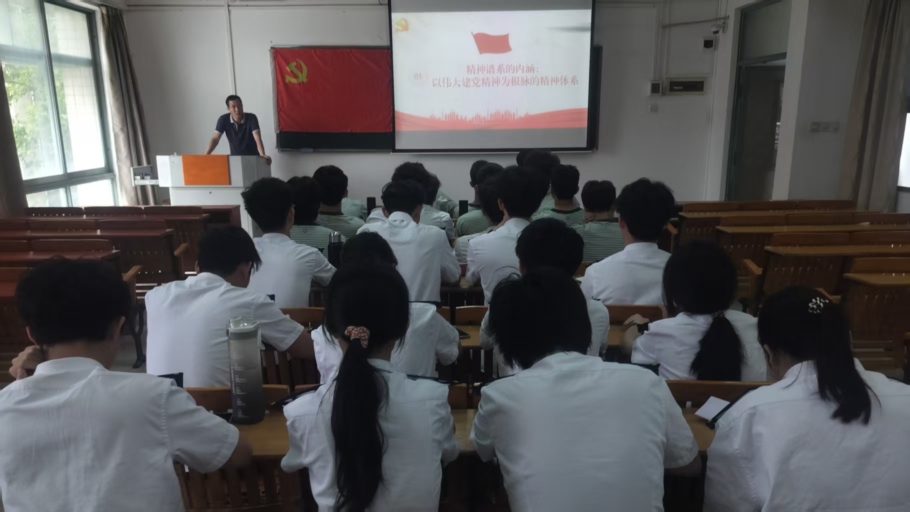 学生党支部书记谭文才以“学精神谱系,做有为青年”为主题,为全体入党积极分子讲授专题党课。课程系统梳理了第一批纳入中国共产党人精神谱系的46种伟大精神,深入解读了伟大建党精神的历史背景和"坚持真理、坚守理想,践行初心、担当使命,不怕牺牲、英勇斗争,对党忠诚、不负人民"的核心内涵。他强调,伟大建党精神是中国共产党人精神谱系的源头活水,勉励全体学员要深学细悟精神谱系,自觉做新时代有为青年。