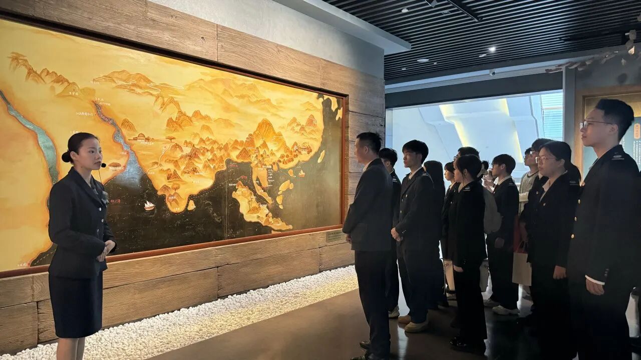 在博物馆讲解员的引导下,师生们重点参观了“黄埔历史文化”“海上丝绸之路与黄埔港”等核心展区。借助珍贵文物、翔实史料与逼真复原场景,大家系统了解了黄埔地区从古代港口逐步发展为现代航运枢纽的历程,深入认识到其作为海上丝绸之路重要节点,在中外贸易往来与文化交流中所发挥的关键作用。党员们驻足于“黄埔古港商船模型”“近代航运文书”等展品前,交流探讨,深刻体悟“开放包容、务实创新”的精神内涵,读懂了中国制造从“港口”驶向“深海”的历史必然。