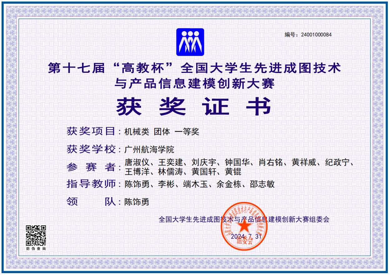 我院参加第17届“高教杯”全国大学生先进成图技术与产品信息建模创新大赛全国总决赛荣获一等奖5项,二等奖2项。